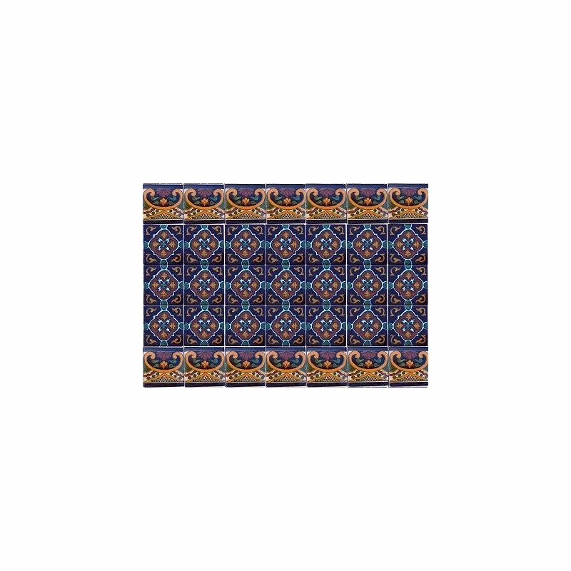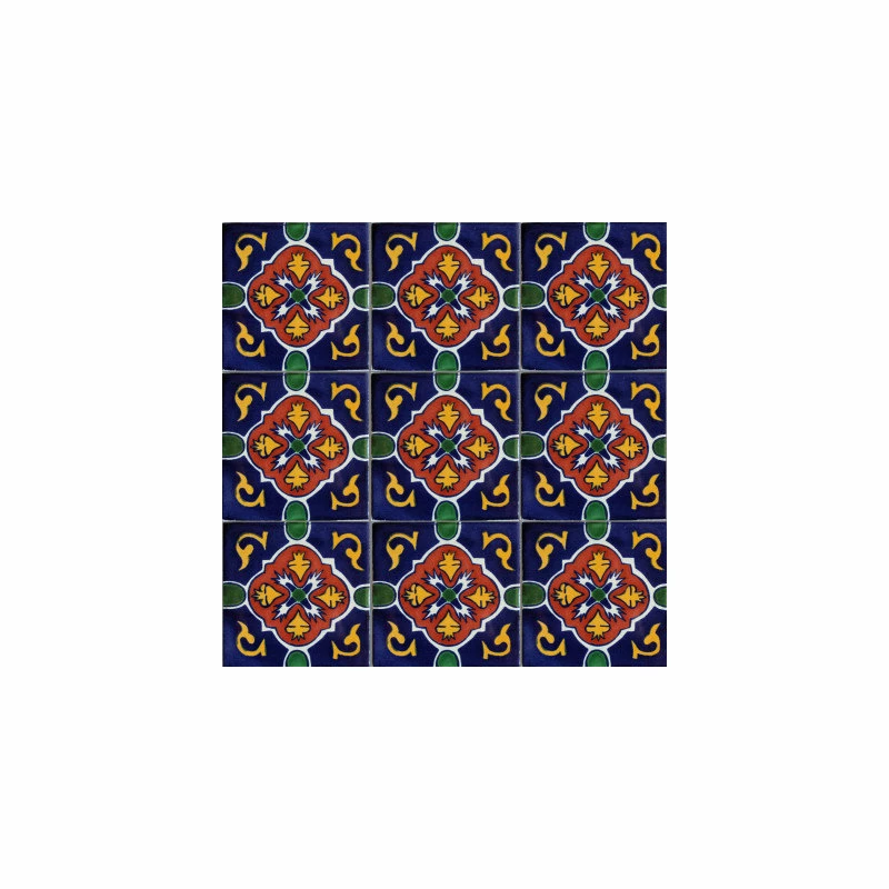 This Talavera clay tile has the four corners handpainted in red color and mostly cobalt blue background. The central part is a very rich combination of color: Blue, red, orange and green combinations to create a unique look! The pictures show the patterns when four or more are put together and when a single tile line is put together for you to appreciate it better.