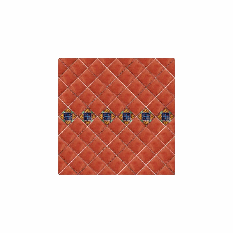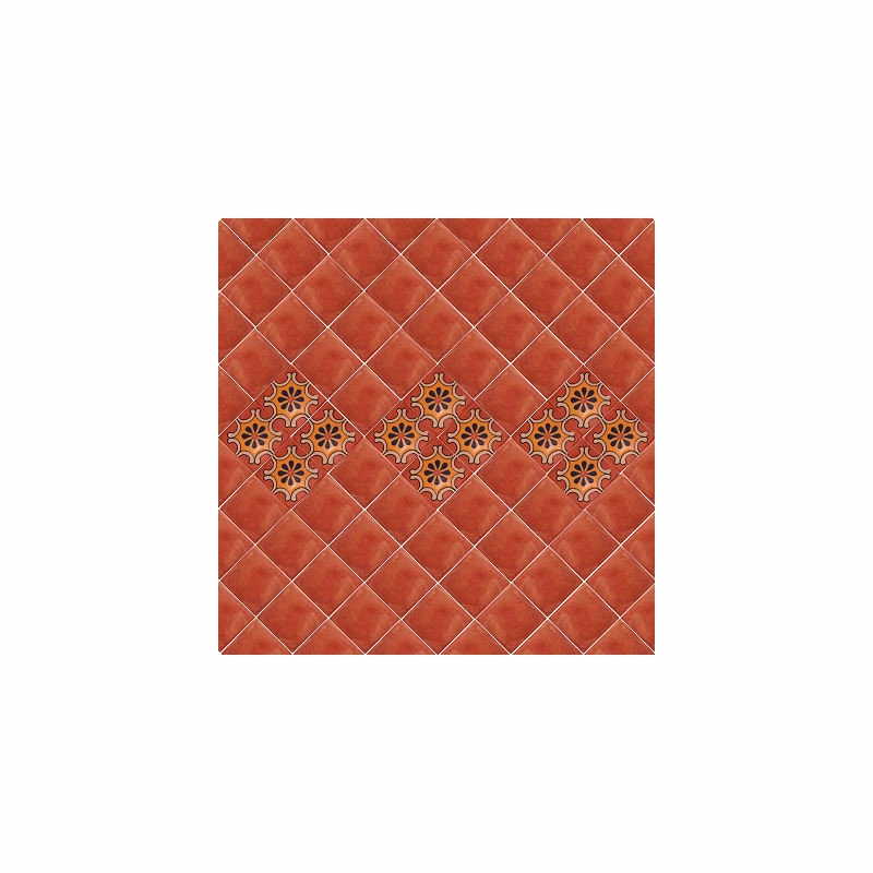 This Talavera ceramic tile is hand-painted in a solid terracotta color. In the manufacturing process the whole tile is painted in white as a first step and then the rest of the tile is painted on top of the white one, so the coloring of this tile is named as terracotta over white. This tile can be used as an accent piece or as a decorative wall by itself as shown in the second picture.This tile is special for small patches or entire wall decoration, as you can see from the pattern found in the last picture.