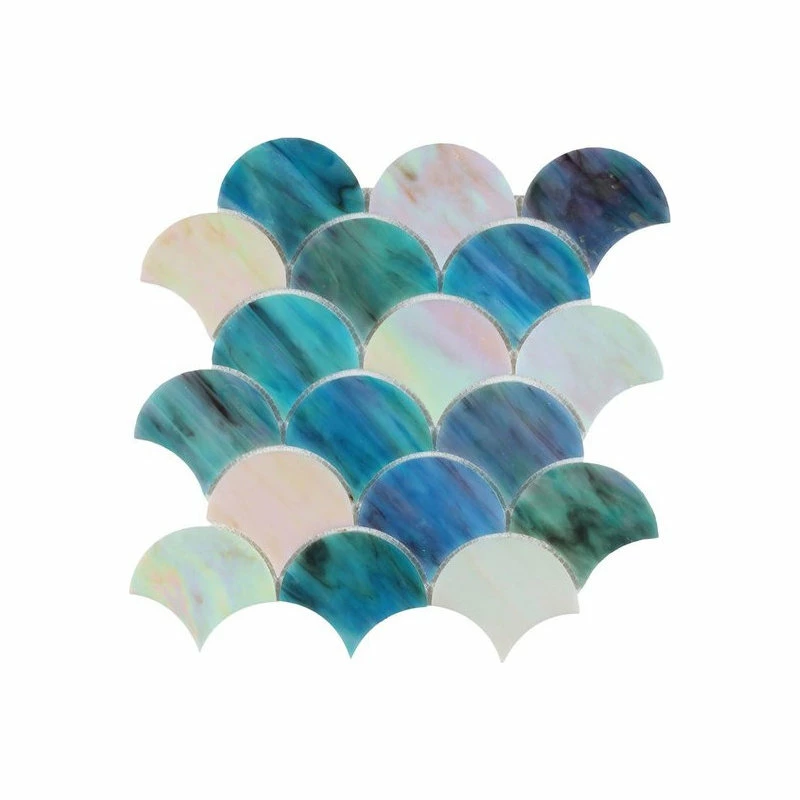 MOSAIC GLASS TILE FISH SCALE SHAPE – GREEN SKY