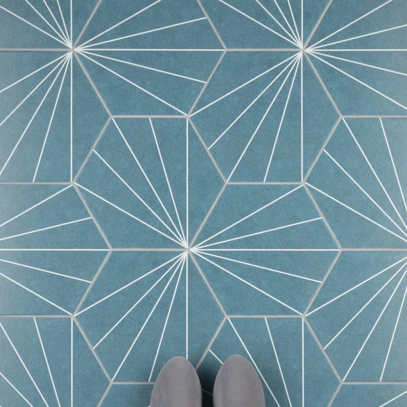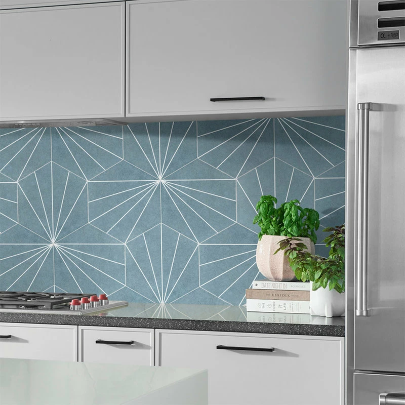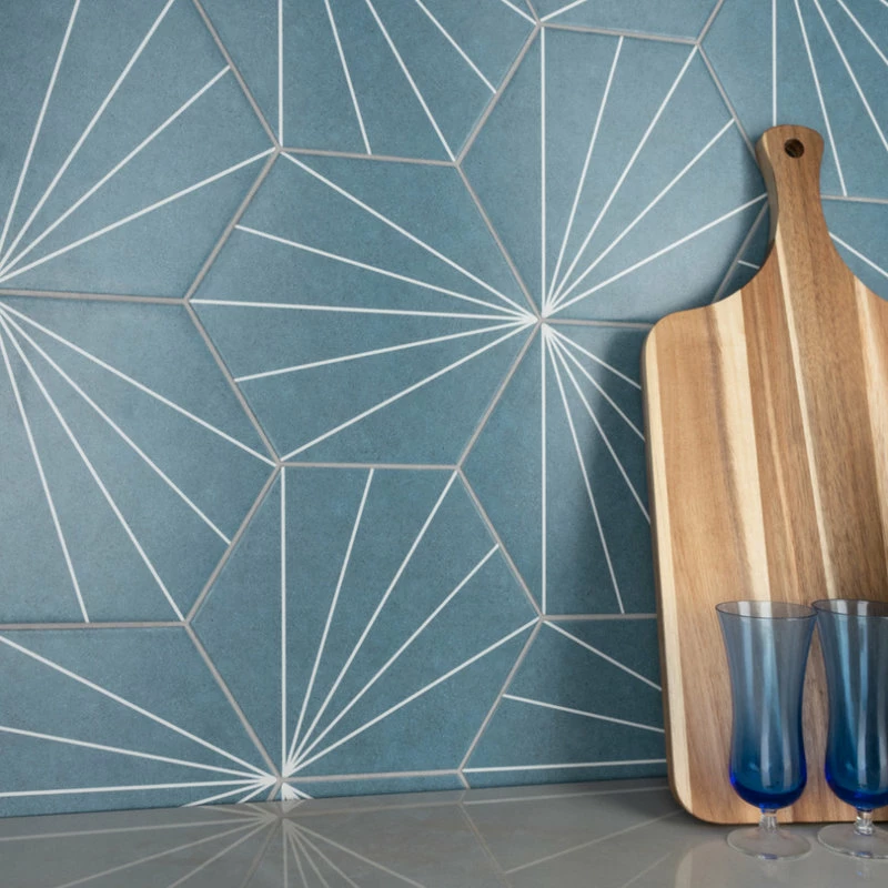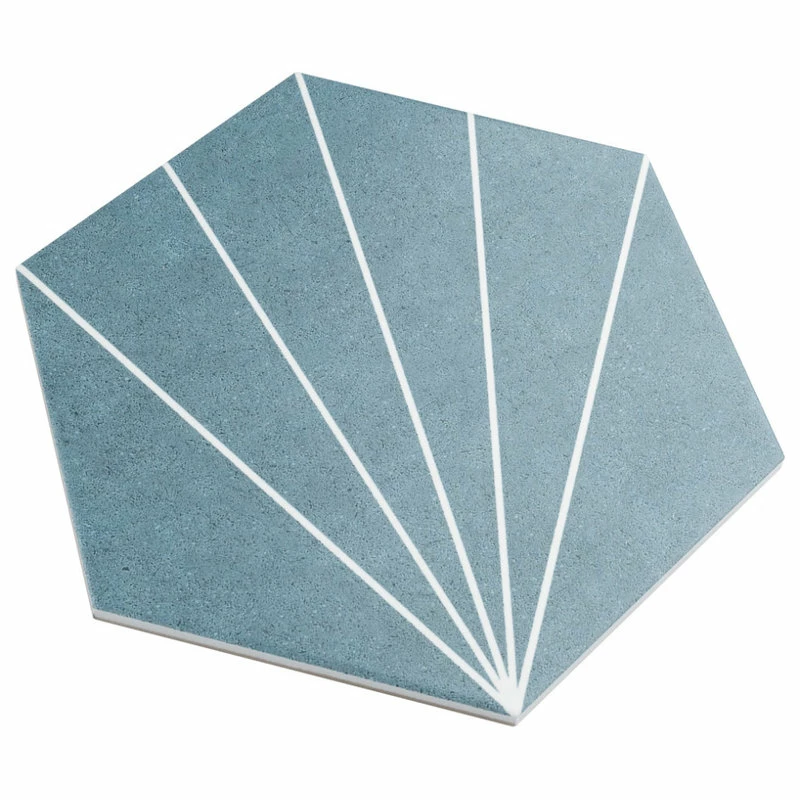 Blending subtle and clean lines, our Aster Hex Azul 8-5/8″ x 9-7/8″ Porcelain Floor and Wall Tile offers geometric minimalism reminiscent of mid-century modern design. This hexagon shaped tile transforms any space into a work of art through linear starburst patterns that when laid out, intertwine to create captivating designs. Set on a smooth, satin base glaze, this porcelain tile features a soft blue color tone accented by bright white lines that extend across the surface. To add further contrast and dimension to the design, this floor and wall tile features speckled pattern variations in varying dark blue color tones. This trendsetting display of geometric pattern is visually appealing and versatile, and can be laid out in various different patterns to create a one-of-a-kind installation. Its impervious and frost-resistant features make this an ideal choice for indoor and outdoor installations, including backsplashes, kitchens, bathrooms, showers, entryways and patios. This tile is a perfect choice on its own or paired with other products in the Aster Collection. Tile is the better choice for your space. This tile is made from natural ingredients, making it a healthy choice as it is free from allergens, VOCs, formaldehyde and PVC.