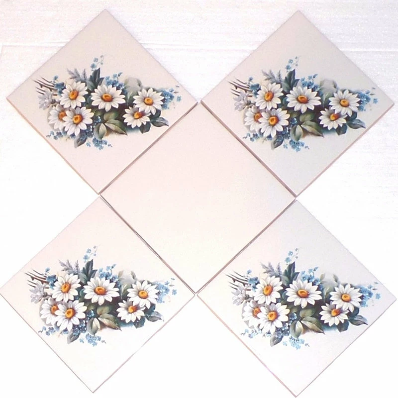 - Set of four (4) individual 4.25″ x 4.25″ white gloss standard grade ceramic wall tiles.