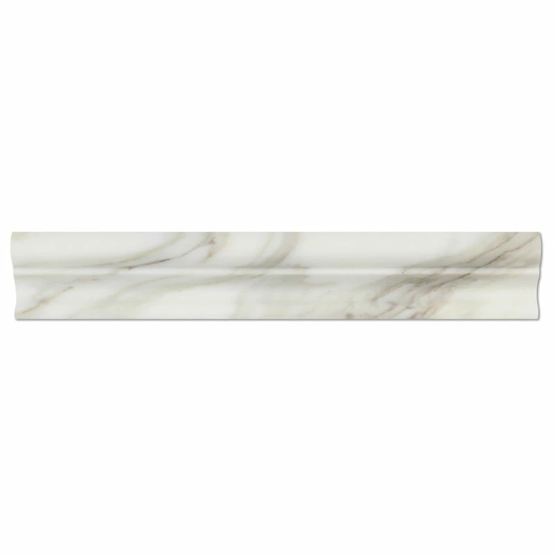 Premium Grade Italian Calacatta Gold (Calacatta Oro) Marble Polished Crown Mercer Molding Trims are perfect for any interior/exterior projects (e.g. kitchen backsplashes, bathroom floors, shower surrounds, countertops, etc.) A large collection of various items are widely available (including moldings, tiles, mosaics and slabs).