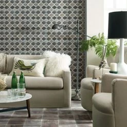 Best Pirce ๐งจ Fancy Design Group Oriental White Honed Marble Wave Border With Blue-Gray Dots ๐คฉ