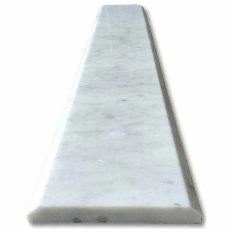 Premium Grade?Carrara White Marble Transition Saddle Threshold Tiles. Italian Carrara Venato Bianco Carrera White Marble Polished 6×36 Transition Saddle Threshold Double Beveled Wall & Floor Tiles are perfect for any interior projects. The 6×36 Carrara White Marble Double Beveled Threshold tiles can be used for a kitchen backsplash, bathroom flooring, shower surround, dining room, entryway, spa. Our timeless?Glossy White Carrera Marble Transition Saddle Threshold Double Beveled tiles with a large selection of coordinating products is available and include?arabesque, fish scale, penny round, herringbone, basketweave mosaics, 12×12, 18×18, 12×24, subway tiles, moldings, borders, and more.