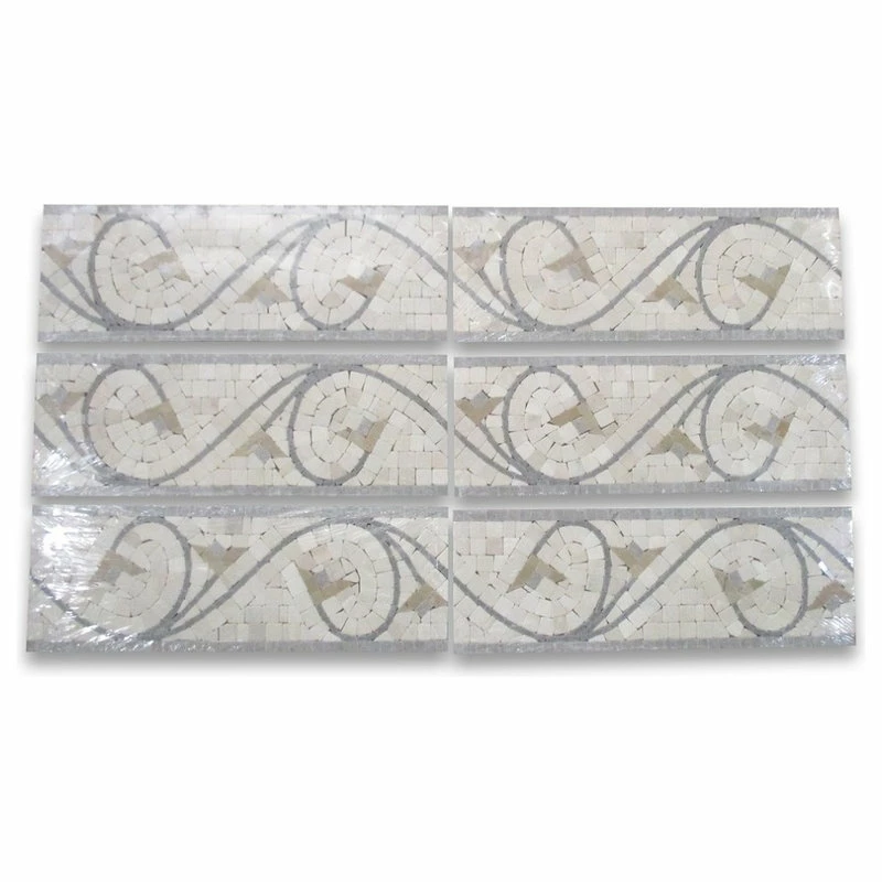- Agean Sienna 5×14.5 Marble Mosaic Border Listello Tile Tumbled Antique Non Slip