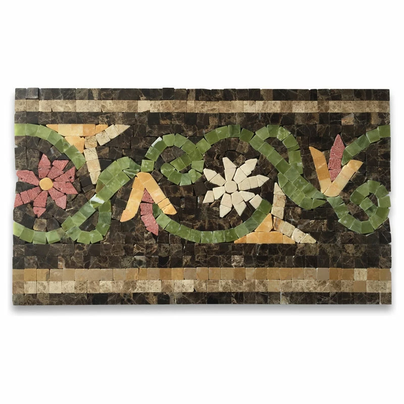 Cheap 😉 Stone Center Online Marble Mosaic Border Listello Tile Blossom Emperador 7.1×12 Polished, 1 Piece ⭐