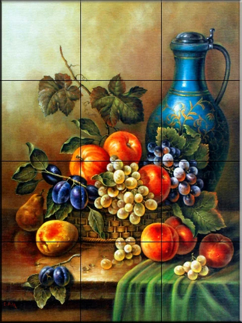 Huge selection of decorative tiles for your kitchen backsplash. We have tile murals of Tuscan scenes, tile murals of fruits and tile murals of vegetables. Our kitchen tiles look beautiful behind your stove or use our ceramic tiles behind your cook top in the kitchen as part of your kitchen backsplash. Look here for kitchen backsplash ideas and decorative tile.